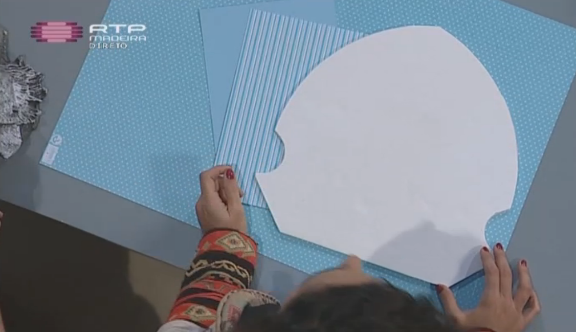 Depois do molde efectuado, vamos forrá-lo com a cartolina de fantasia.